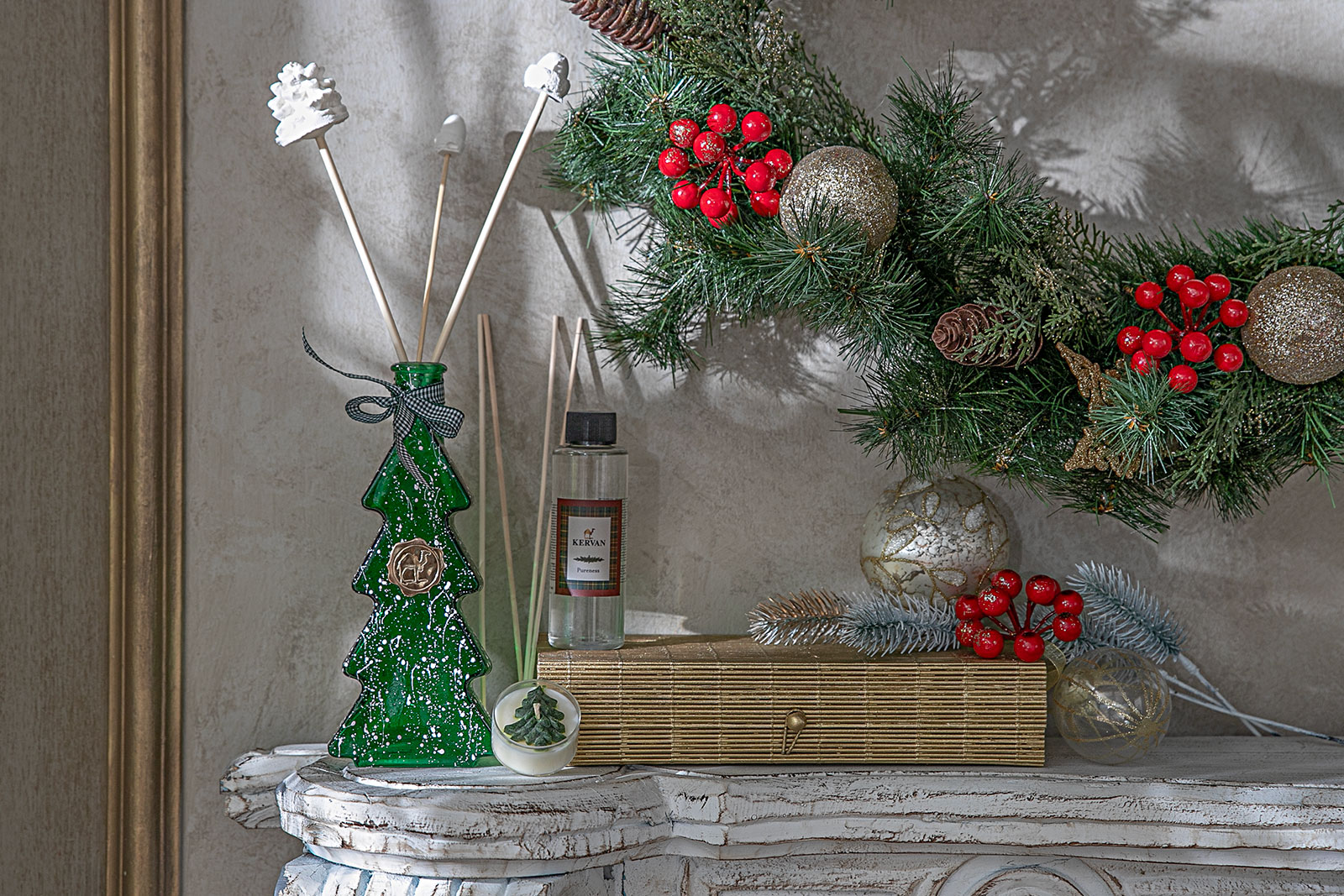 ÇAM AĞAÇLI DEKORATİF KOKU ŞİŞESİ KUTULU SET KIRMIZI