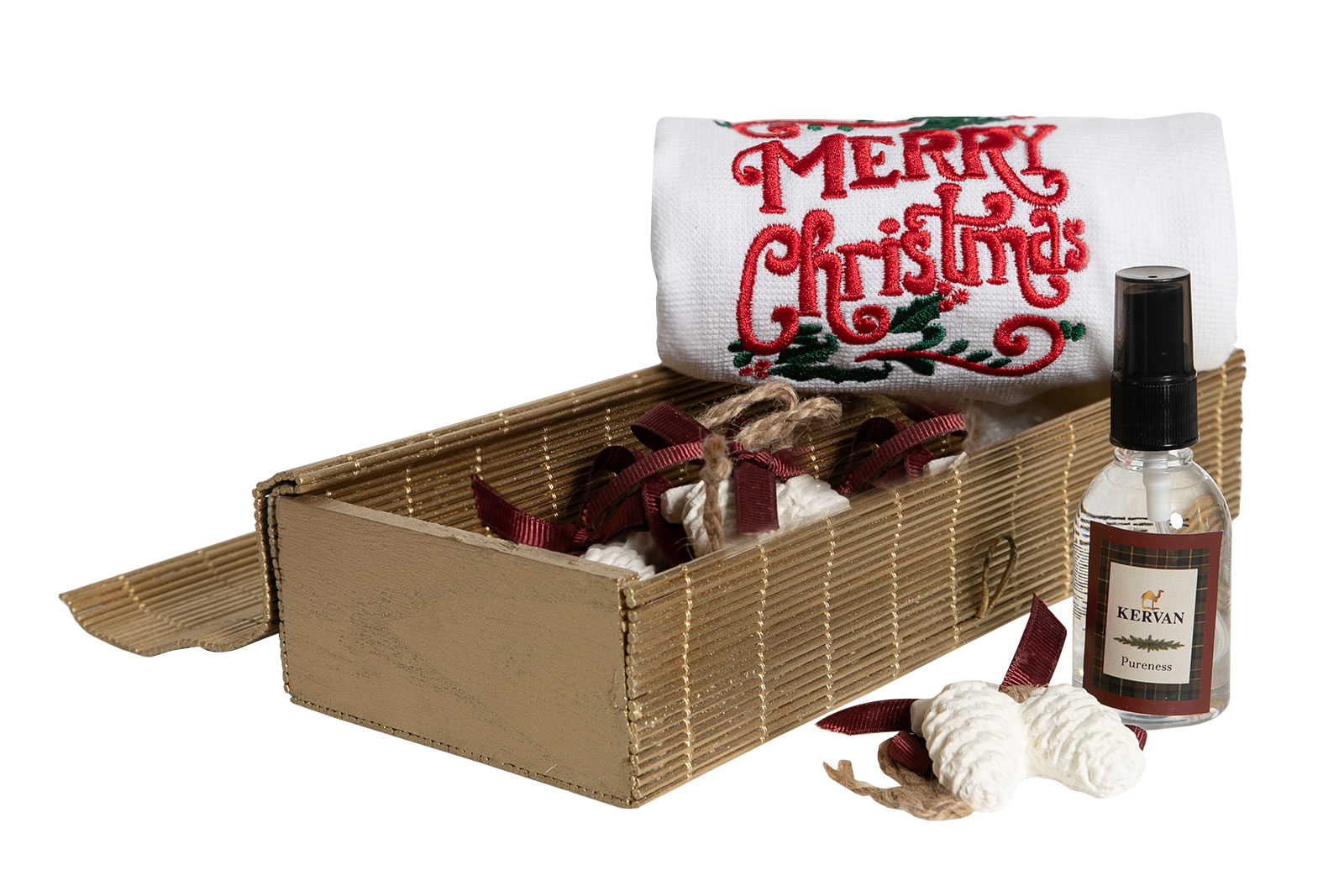 6’LI KOZALAK KOKU TAŞI/MERRY CHRISTMAS NAKIŞLI HAVLU 50×75 cm KUTULU SET BEYAZ