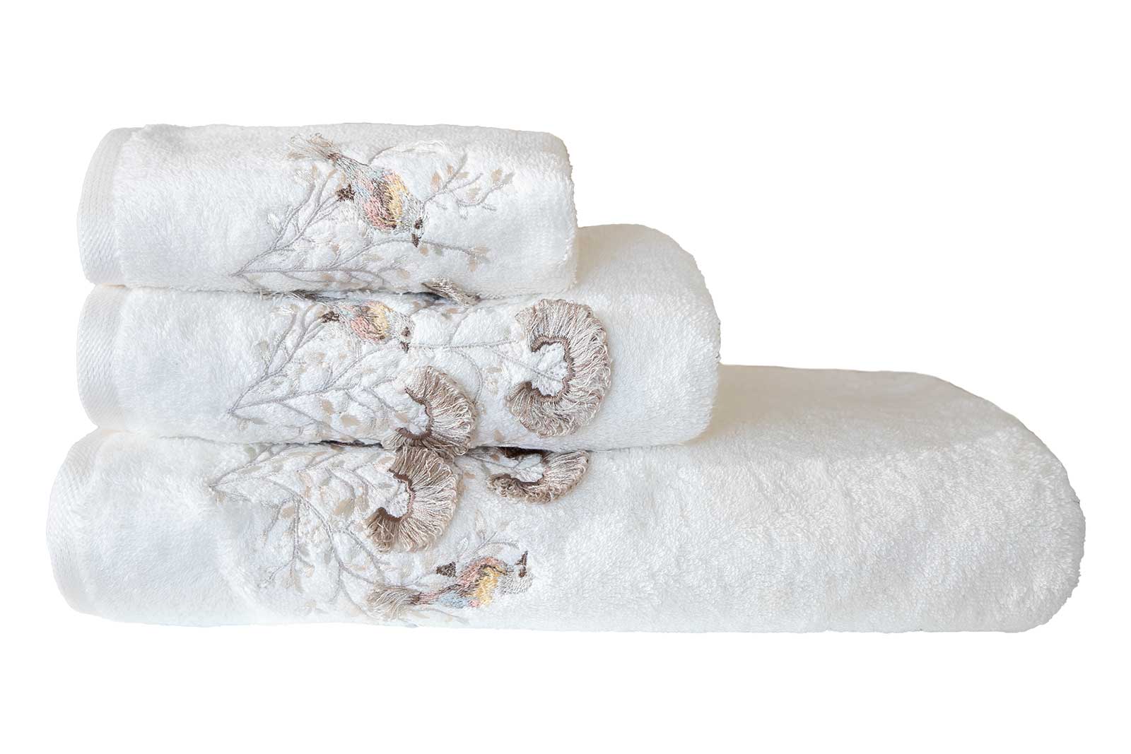 BOMONTİ HAVLU 50X90 KUŞ NAKIŞLI EKRU RENK