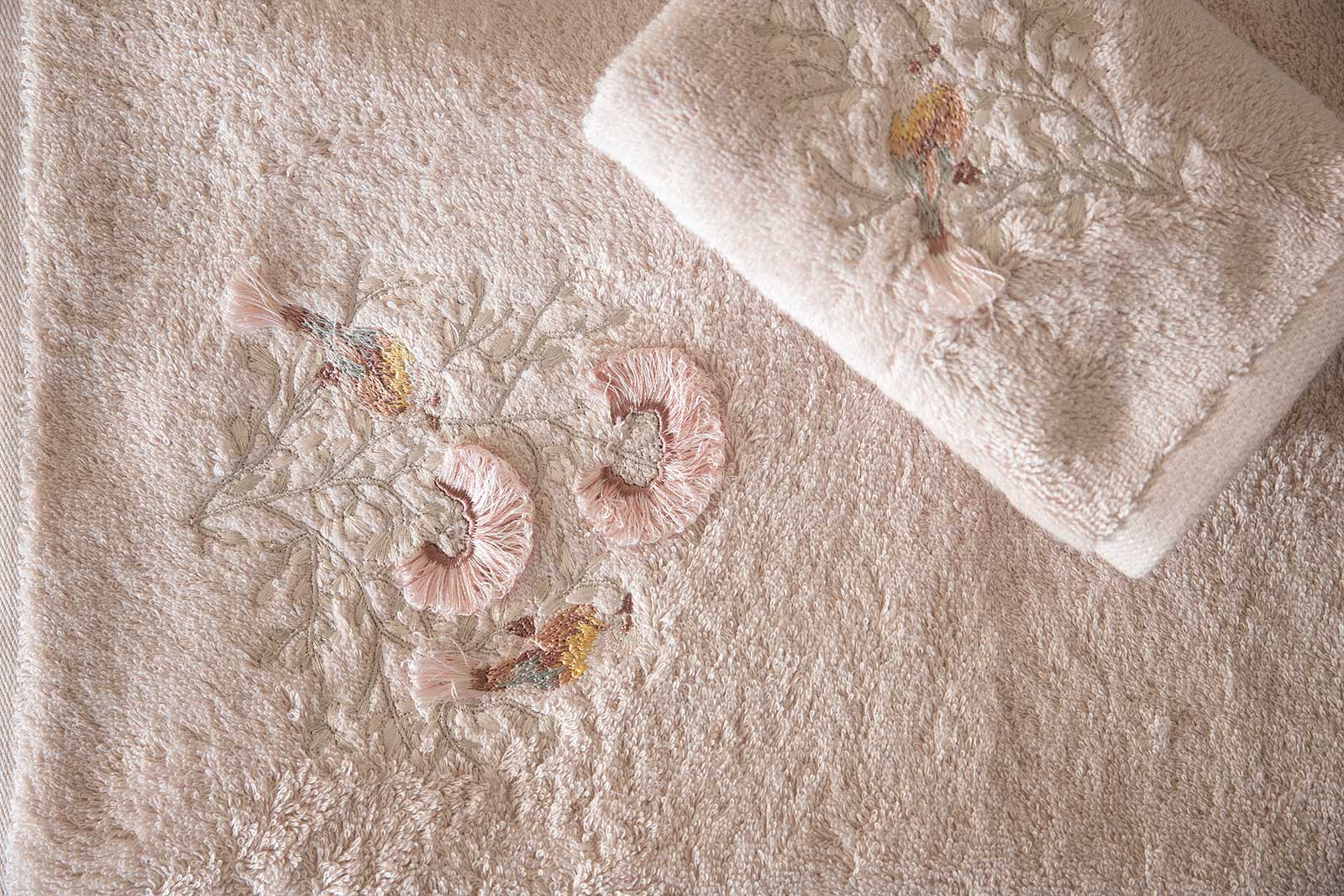 BOMONTİ HAVLU 50X90 KUŞ NAKIŞLI TAŞ RENK