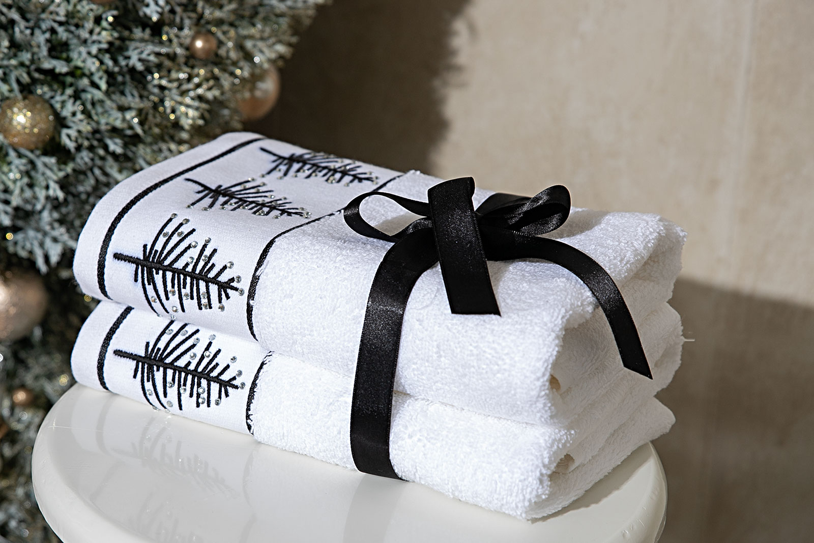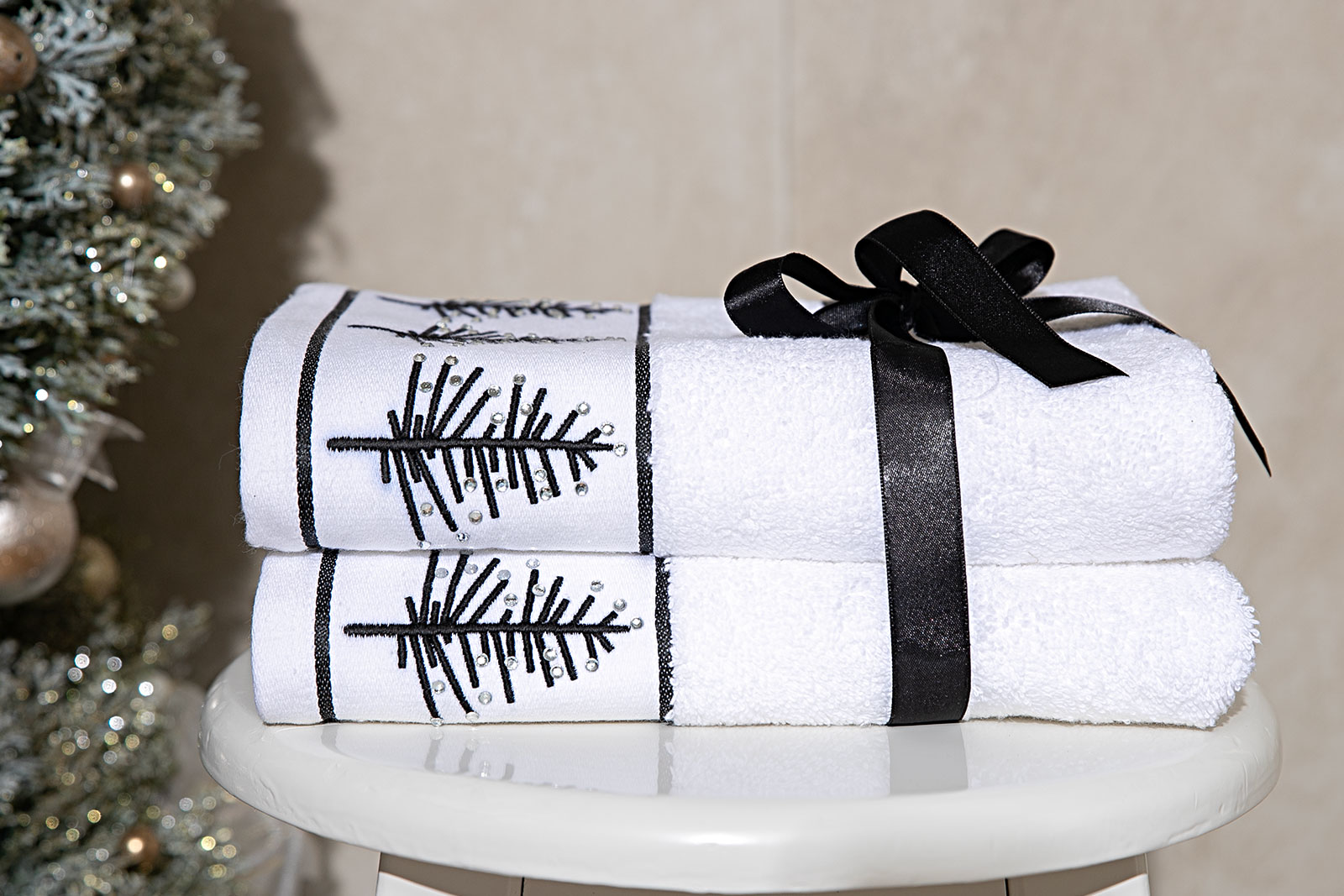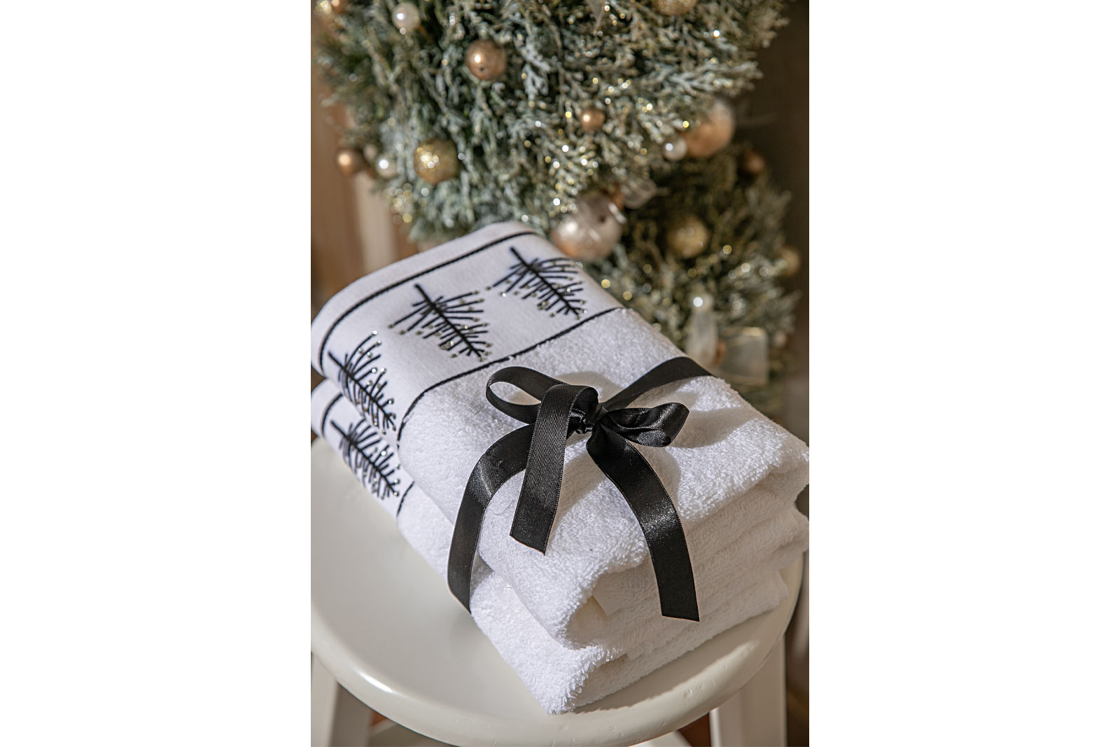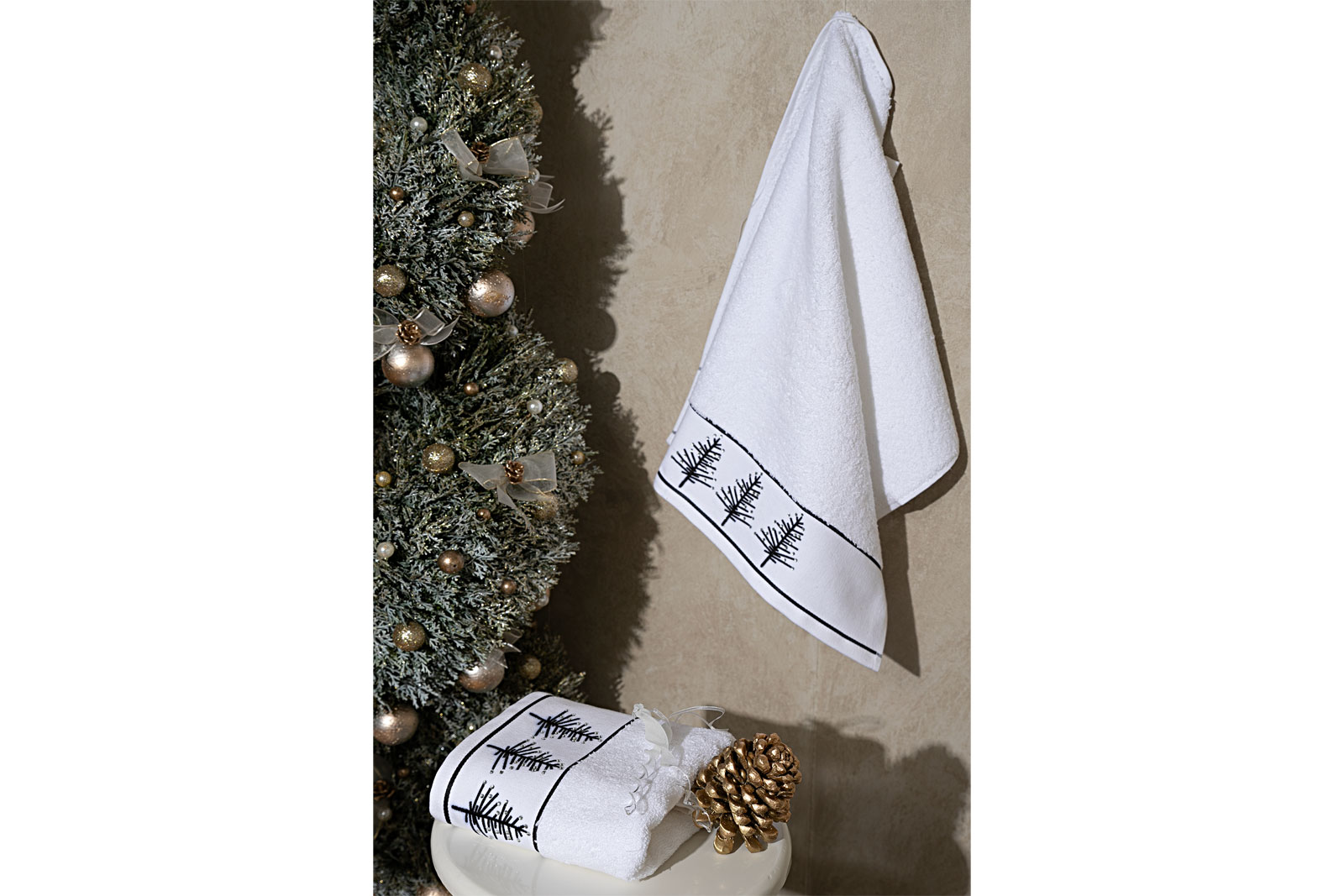İKİLİ 45X70 cm ÇAM AĞAÇLI HAVLU BEYAZ-SİYAH