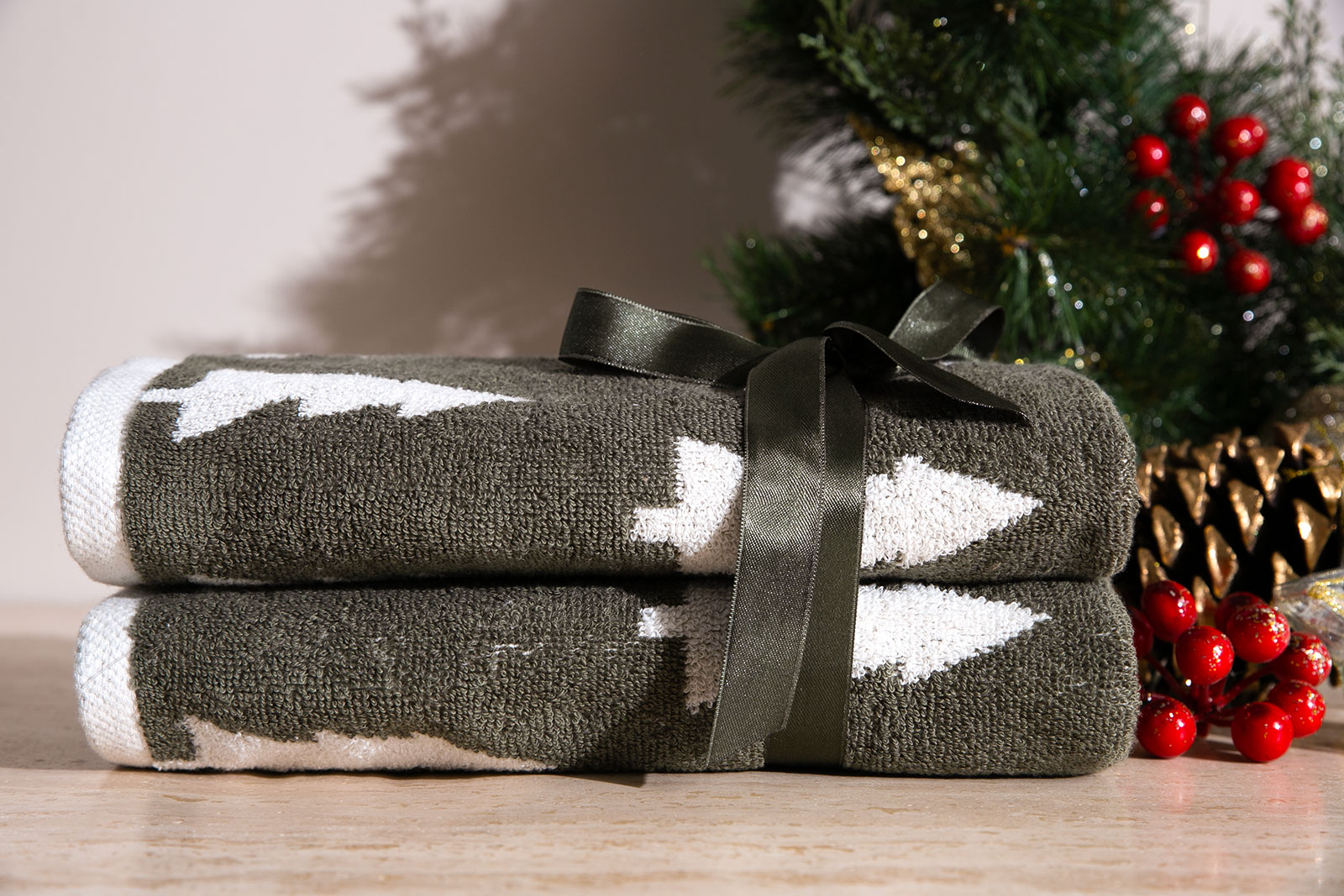 İKİLİ 45X70 cm ÇAM AĞACI JAKAR HAVLU YEŞİL