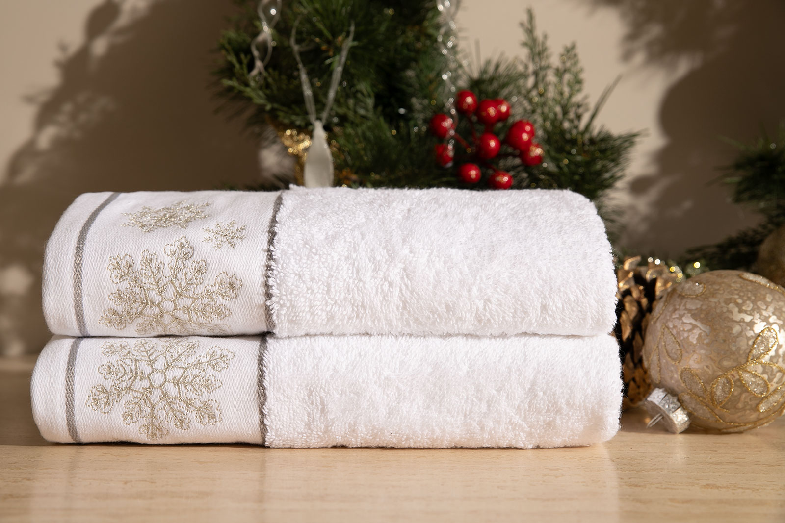 İKİLİ 45X70 cm KARTANESİ KUTULU HAVLU BEYAZ-GRİ