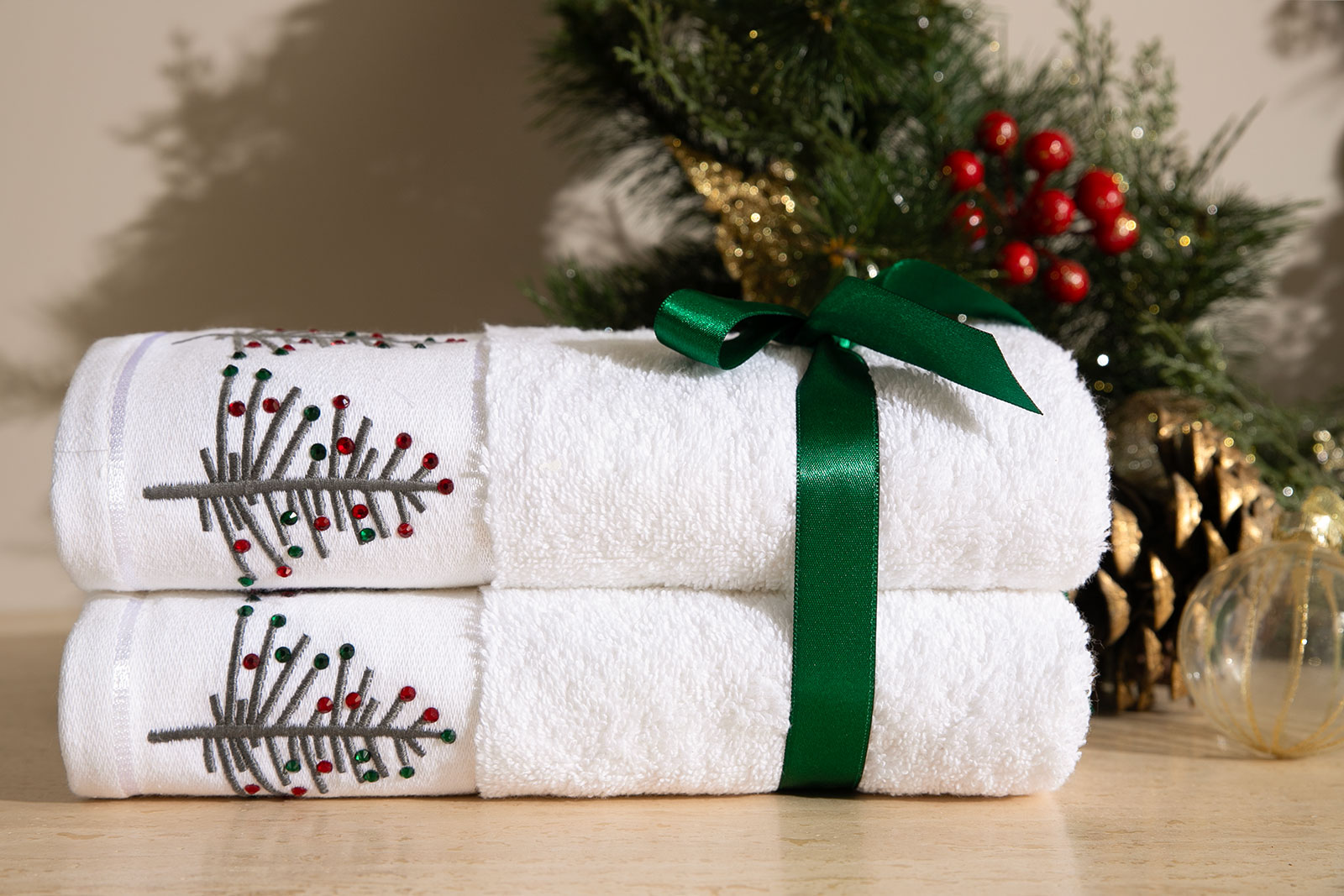 İKİLİ 45X70 cm ÇAM AĞAÇLI HAVLU BEYAZ-GRİMİX