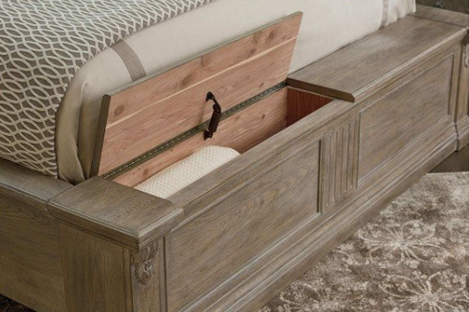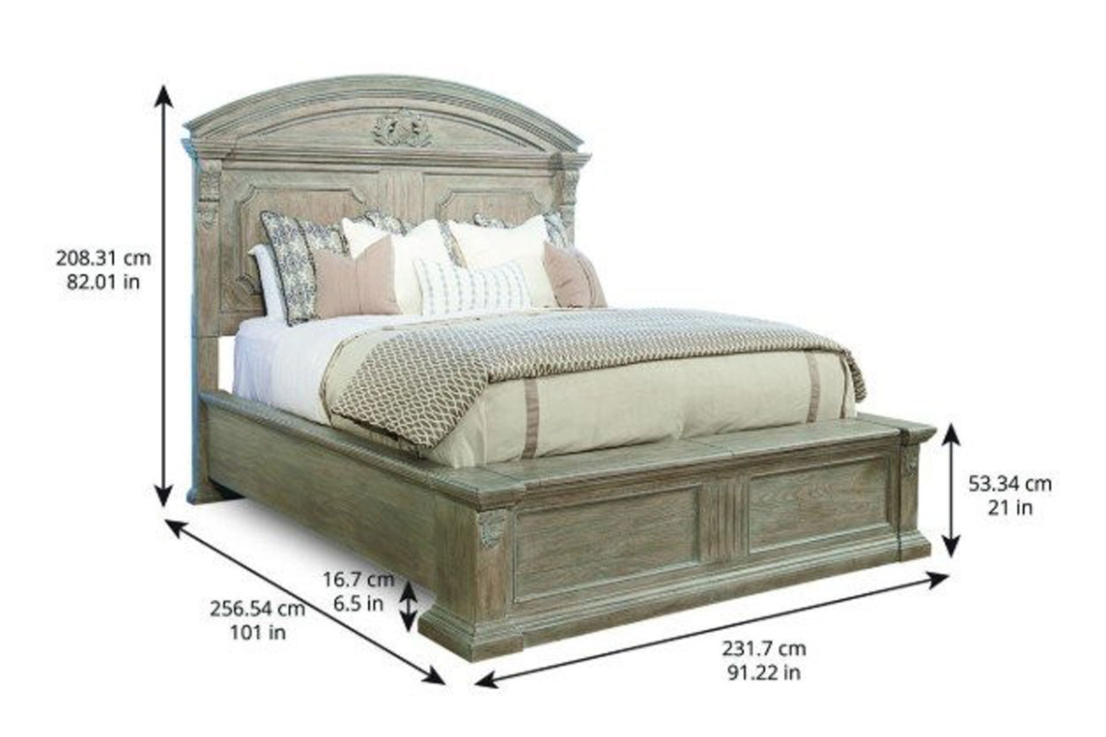 Yatak için iç yatak ölçüsü 193 x 203 cm’dir.