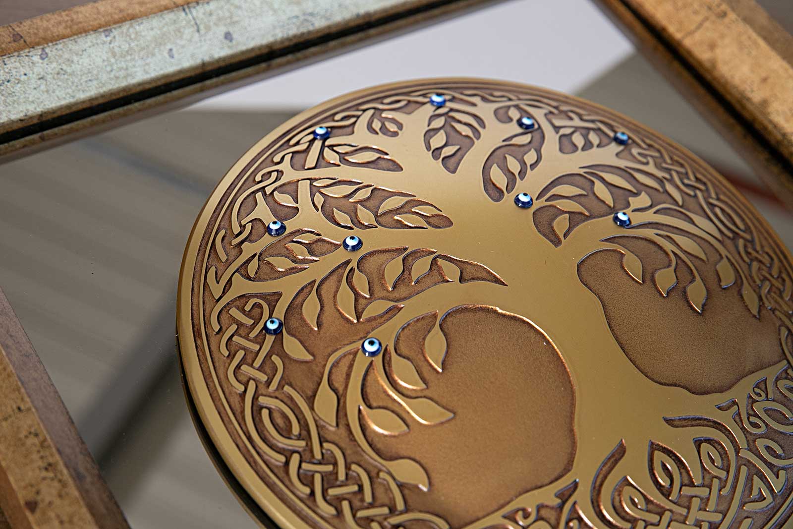 HAYAT AĞACI DUVAR DEKOR (BRONZ AYNALI NAZAR BONCUKLU) 27X27 CM