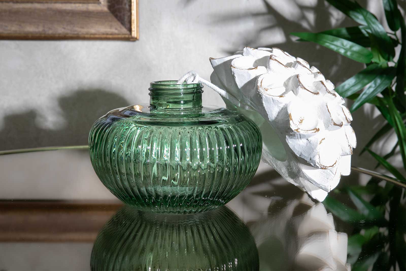 DAHLİA 350 CC YILDIZ ÇİÇEĞİ TAŞLI KOKU ŞİŞESİ 13,5X13,5 CM YEŞİL