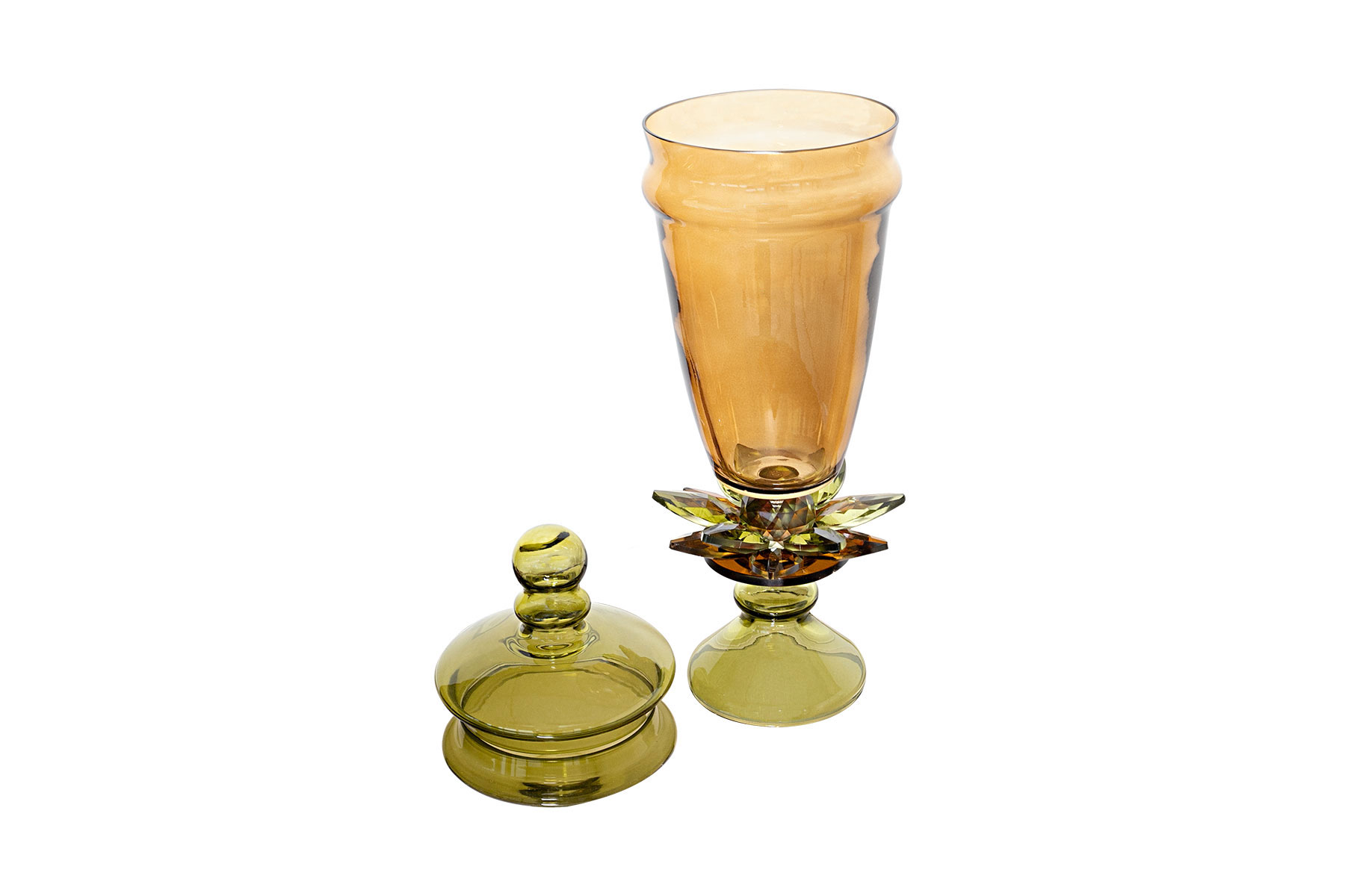 KAPAKLI KÜÇÜK VAZO AMBER-YEŞİL 12.5×41.5 cm